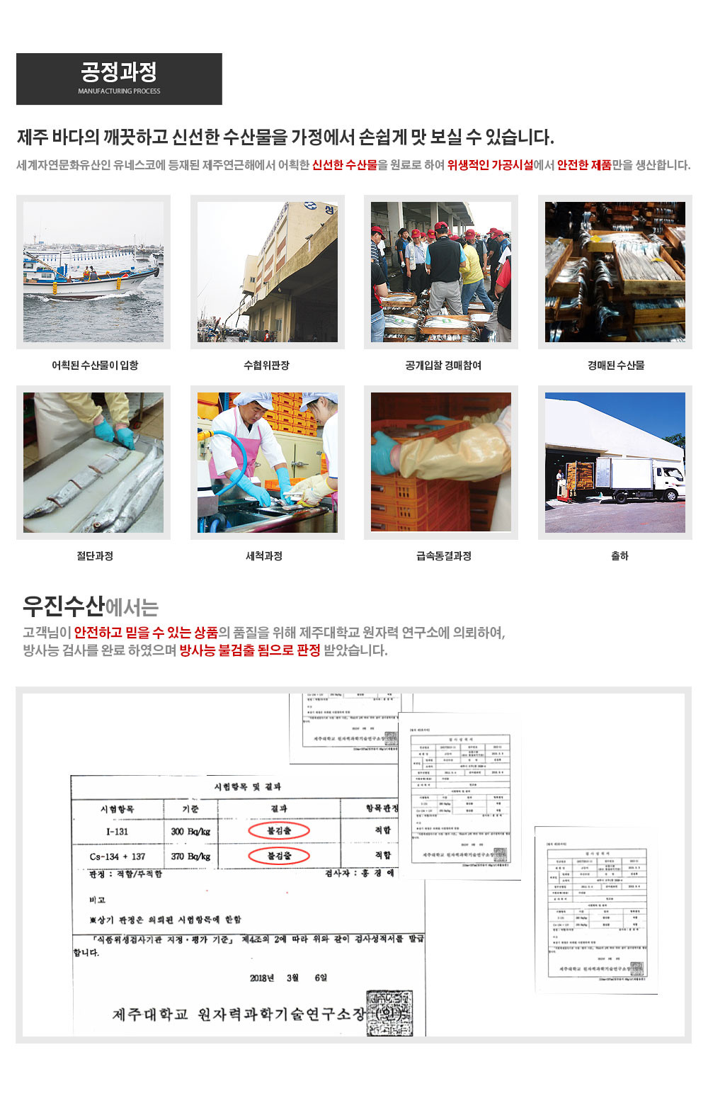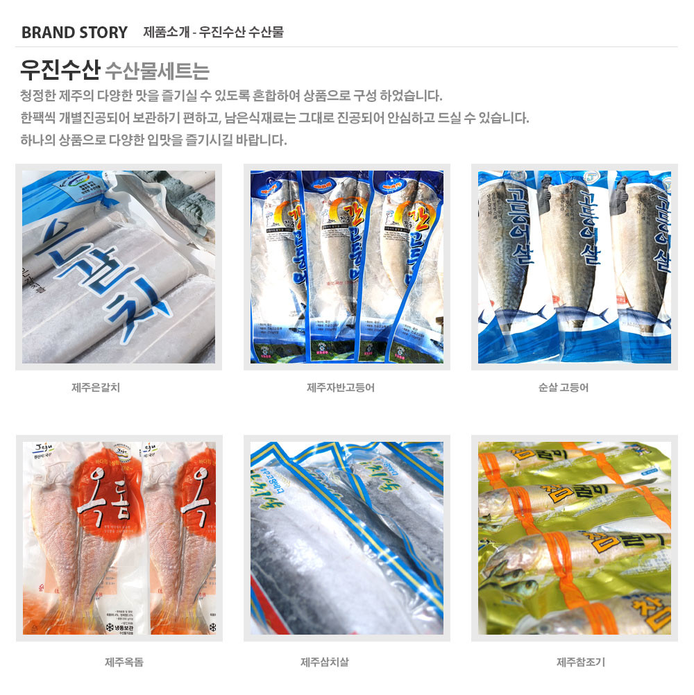 옥돔 400g이상 3마리, 갈치 550g이상 3마리, 진공고등어살 2kg(9~10팩) / 제조원:제주우진수산